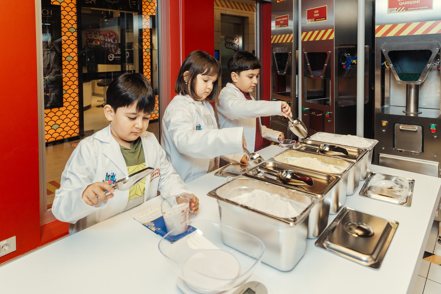 In this activity kids perform as food engineers and listen to the information about cacao beans, growth of the cacao tree and chocolate making process. Then the food engineer candidates start the production of chocolate in the factory while experiencing all stages of manufacturing of this heavenly treat.