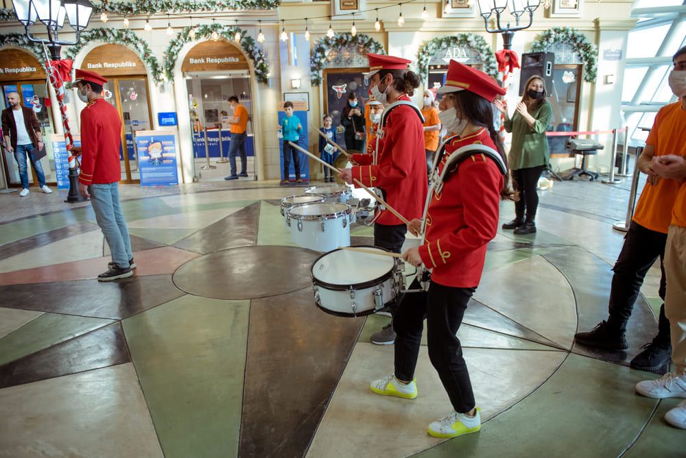 В программу мероприятия входили веселые игры с клоуном, Дедом Морозом и эльфами, живое выступление от MerryBand, специальный гость - Mr.Black; Face Art, DJ, Paper Show и призовые конкурсы, а также 2 типа комбо-меню на выбор (пицца или бургер) для всех гостей.